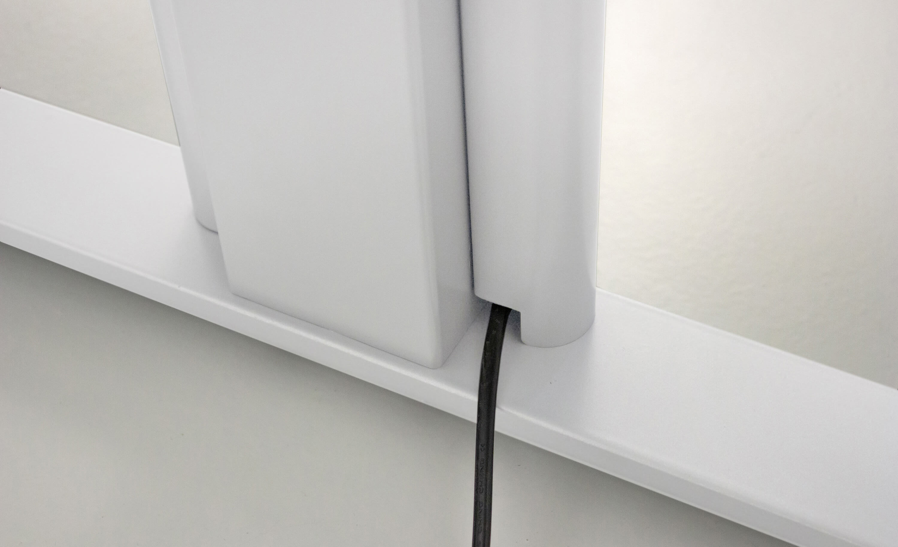Zusätzlicher Stauraum ohne Beinfreiheit einzuschränken. bietet das neuartige. ausziehbaren Ablagefach unter der Tischplatte. Für Arbeitssicherheit sowie Ordnung unter und auf dem Schreibtisch bieten wir Ihnen ein optimales Kabelmanagement bestehend aus einer vertikale Kabelführung. einem horizontalen Kabelkanal (Unsere Empfehlung: Ab einer Tischlänge von 160cm zwei Kabelkanäle dazu bestellen.) sowie farbig passende Kabeldurchlässe (links. mittig oder rechts).