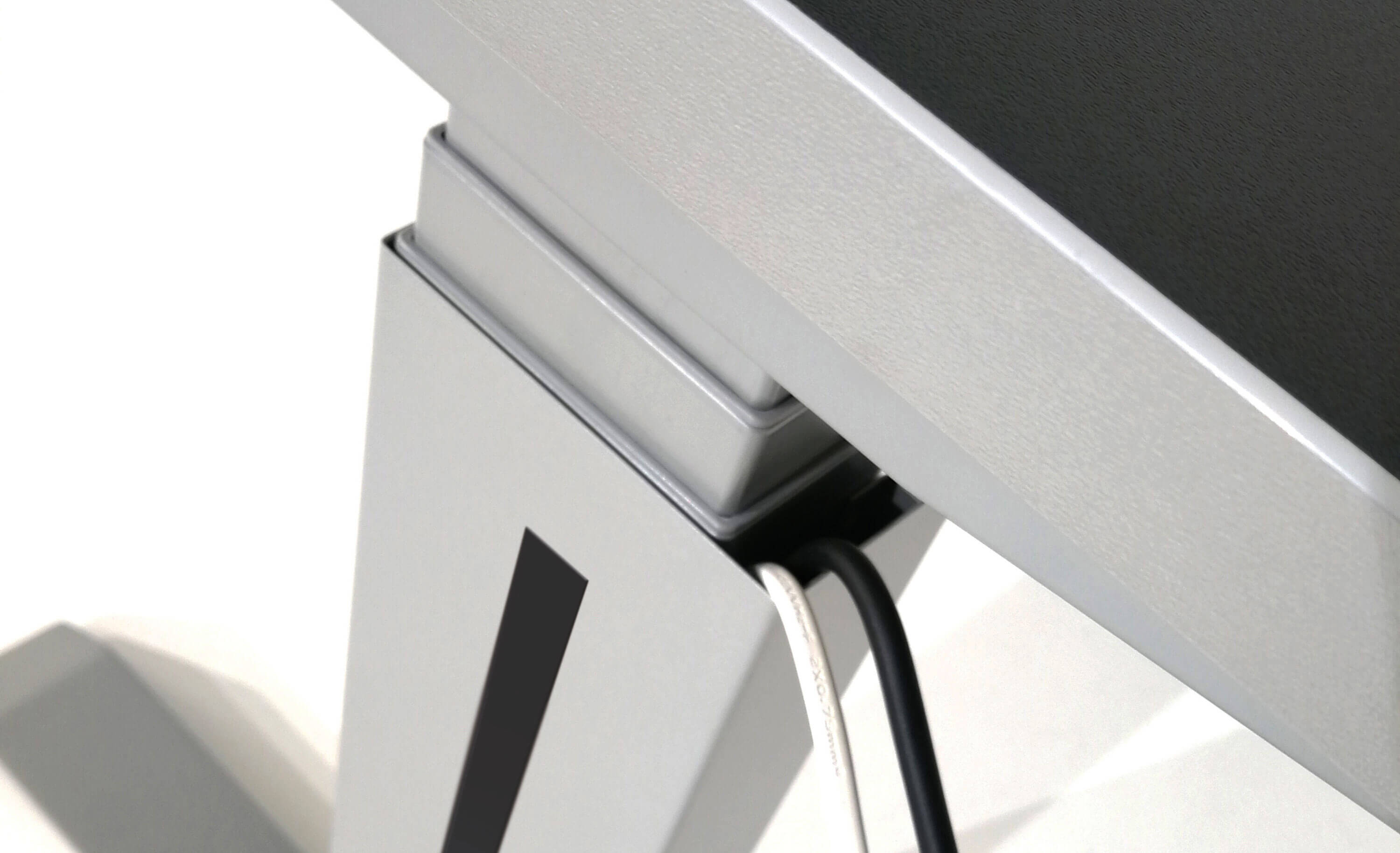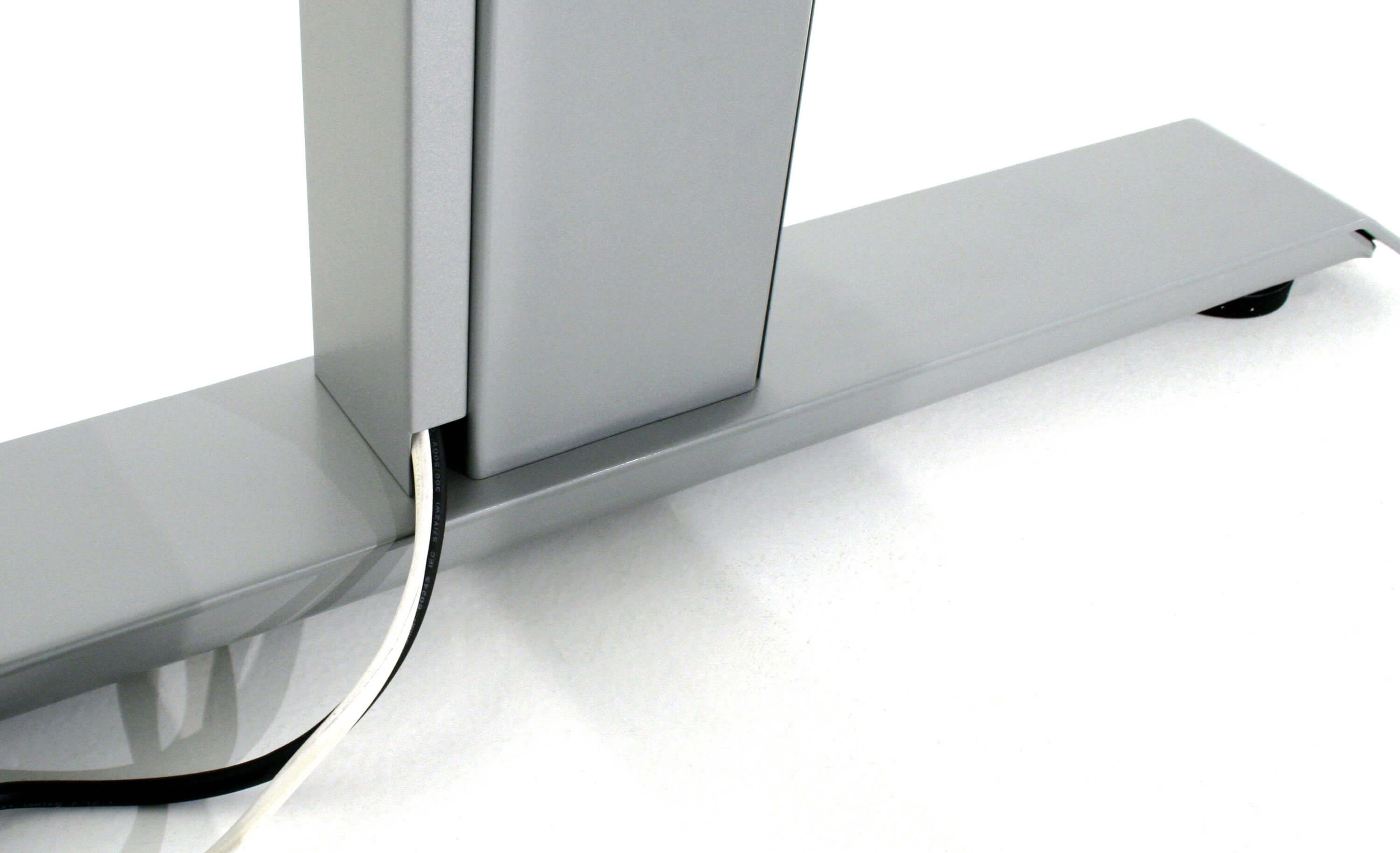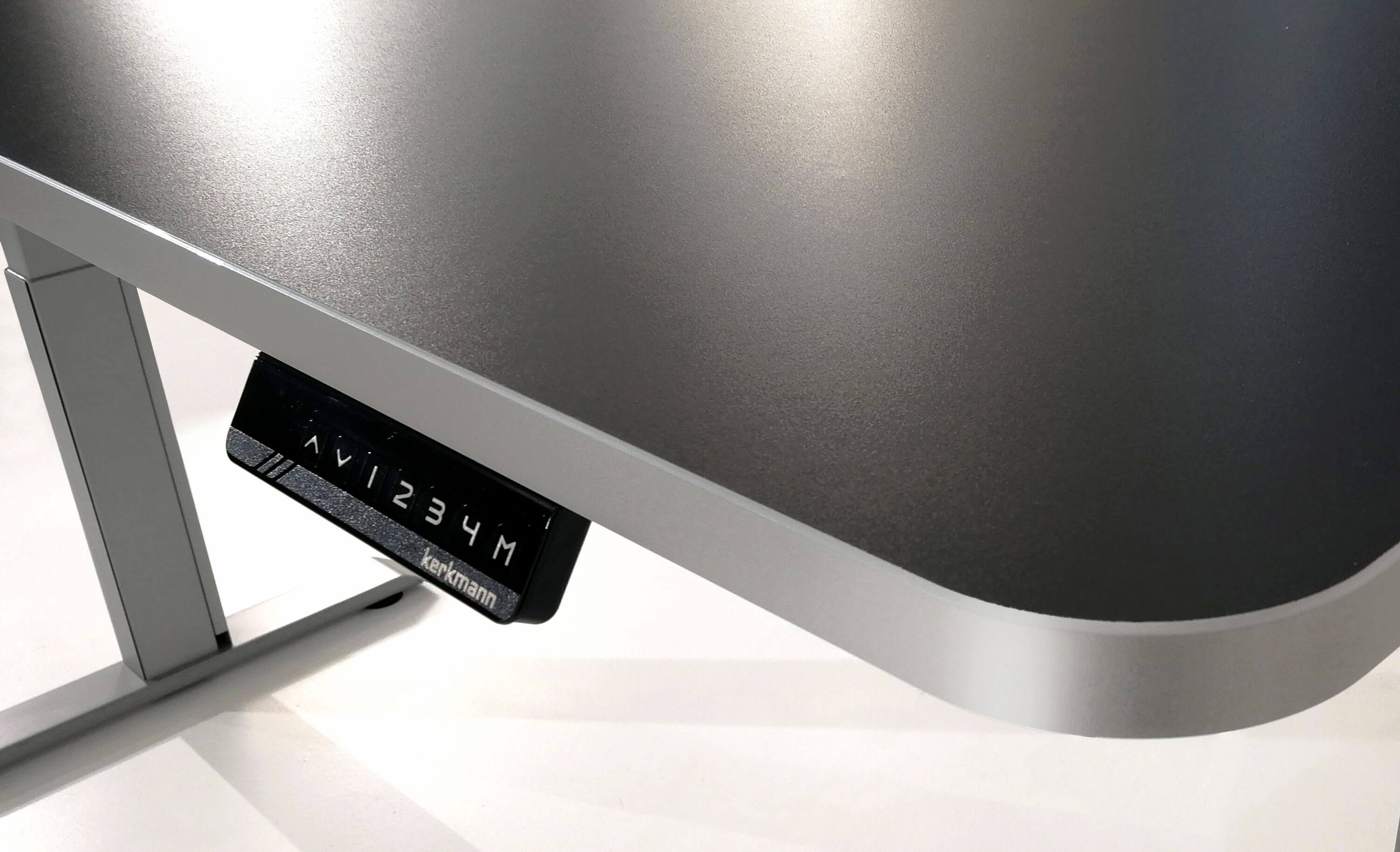 Das Bedienpanel ist mit einer vierfachen Höhenspeicherung (Memory-Funktion) und einer Höhen-Anzeige ausgestattet. Für oredntliche Kabelführung unterm Arbeitsplatz sorgen die vertikalen Kabelschächte.