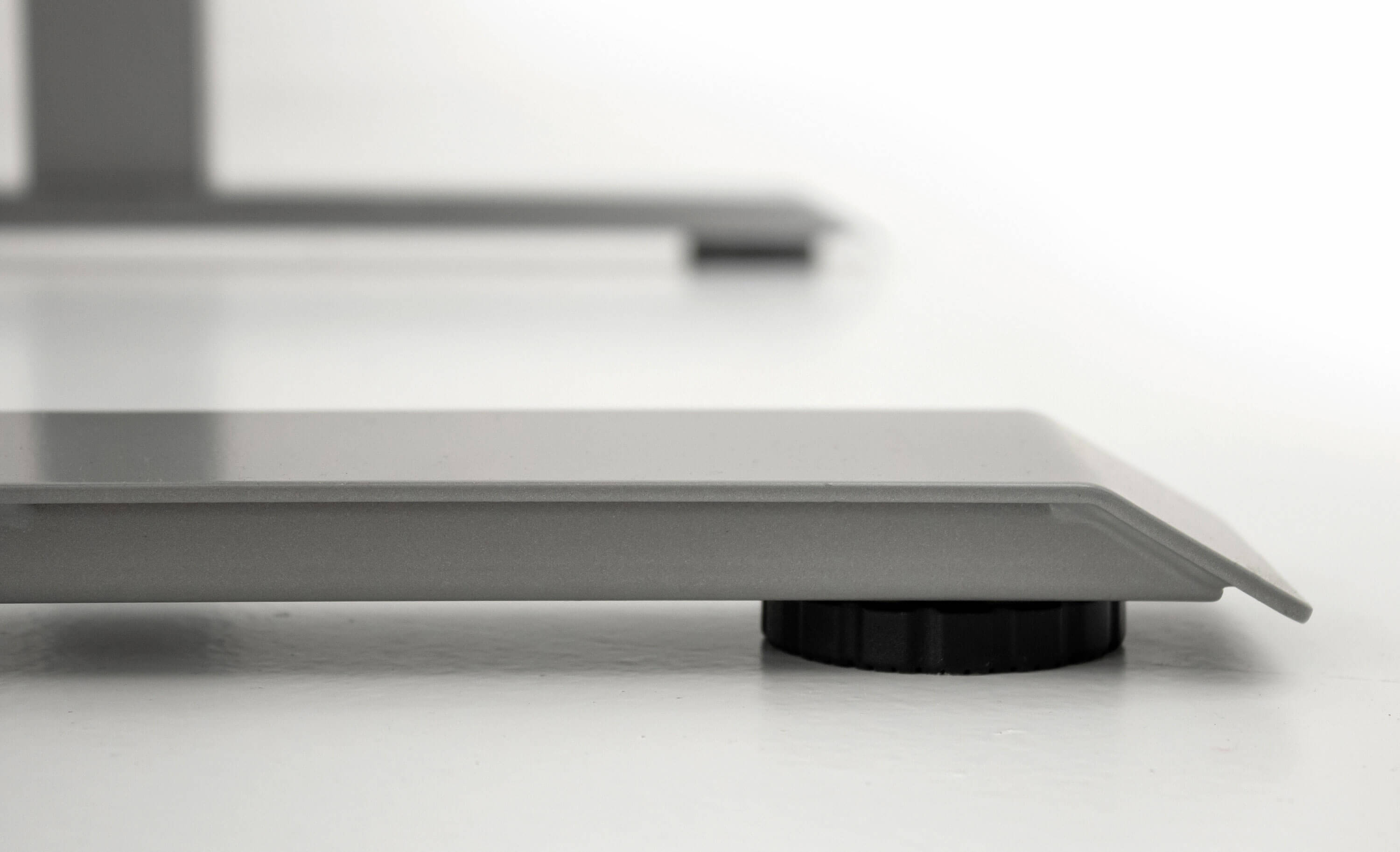 Ein professioneller Schreibtisch mit außergewöhnlich hoher Stabilität: Dieser Steh-Sitz-Schreibtisch kommt mit einem besonders groß dimensioniertes Tischgestell und Tischplatte (25 mm) nach DIN EN 527-1. Diese Tischkonstruktion führt zu einer außergewöhnlichen Stabilität für den täglichen Berufsalltag.