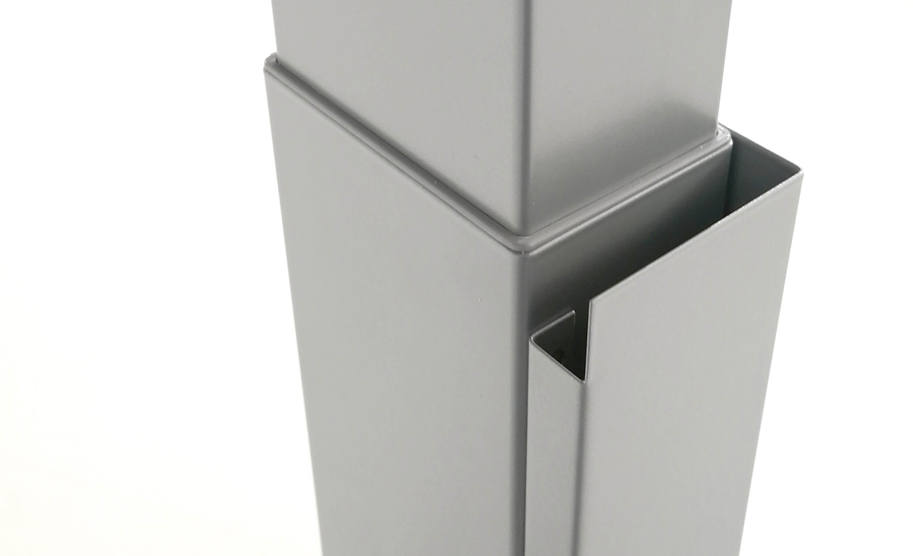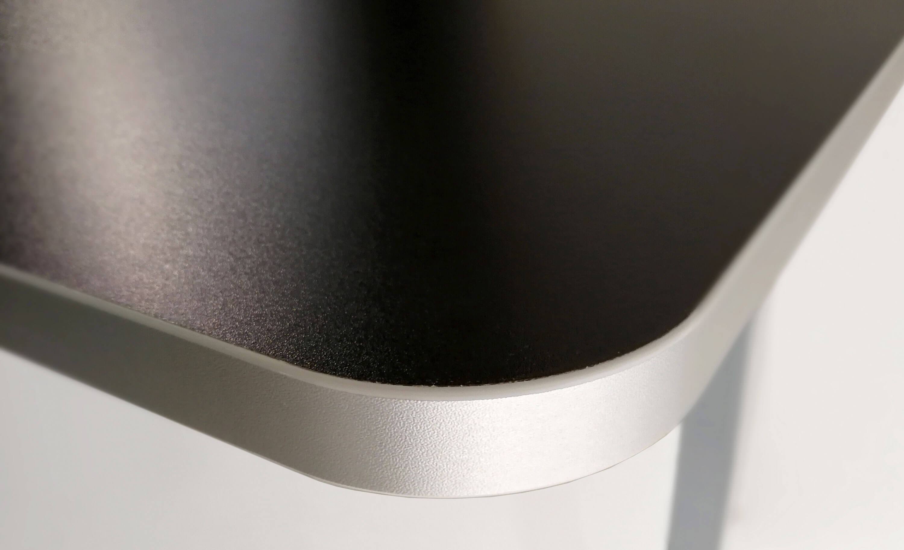 Die Arbeitsplatten sind mit einer langlebigen Melaminharzbeschichtung überzogen. Die abgerundeten Ecken mit einem Radius von 60 mm bieten großen Schutz gegen unangenehme Stöße.