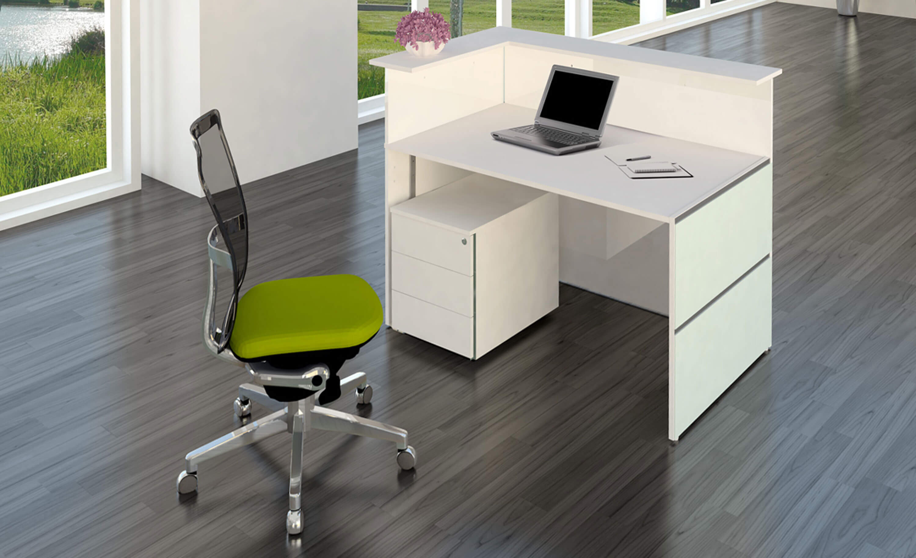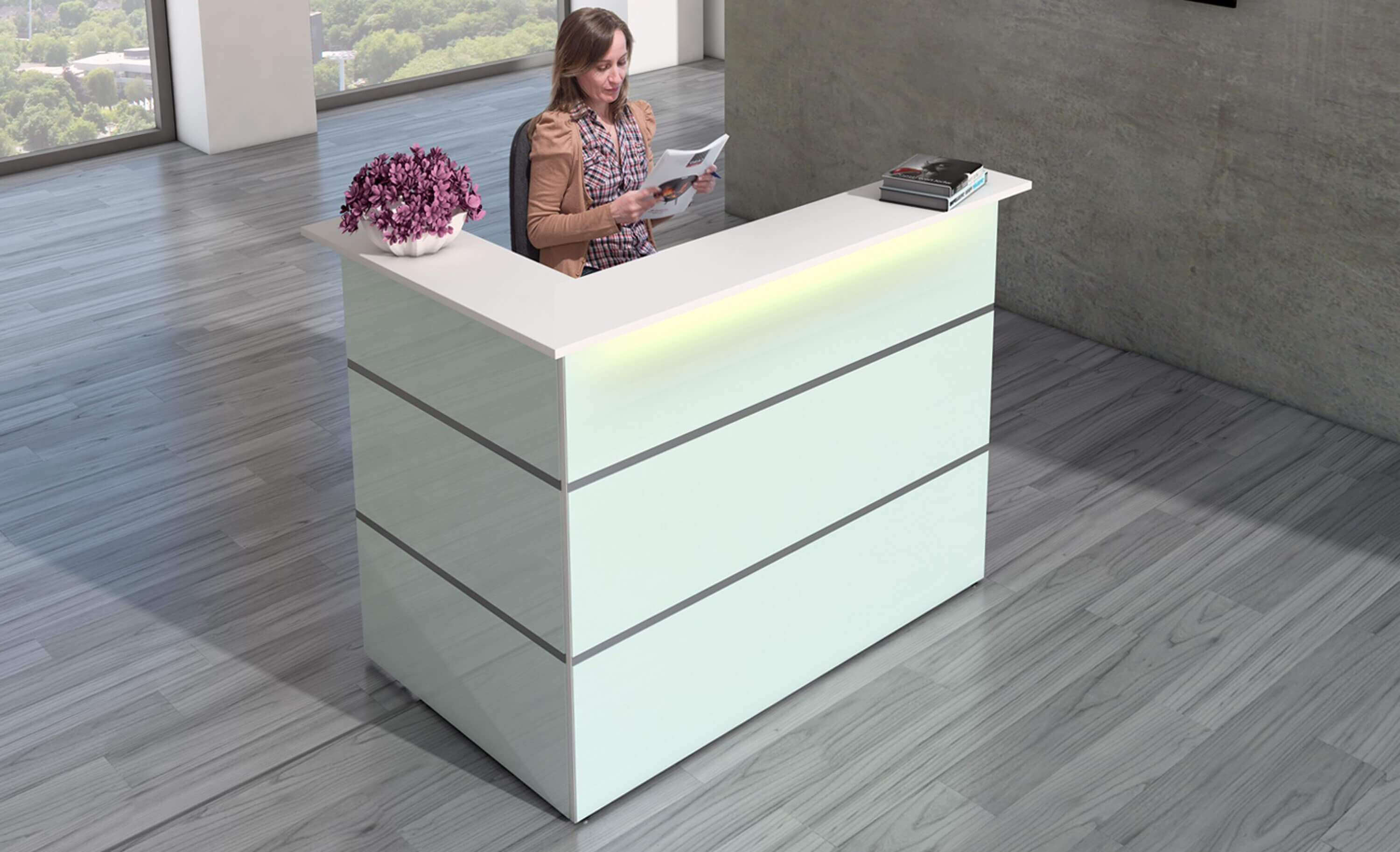 Die „Kleine Ecktheke Atlantis“ in der eleganten Farbkombination Weiß/Glas verbindet modernes Design mit hoher Funktionalität – perfekt für Empfangs‑ und Beratungssituationen in kleinen und mittelständischen Unternehmen. Mit einer Tiefe von 95 cm und einer Höhe von 110 cm bietet diese Ecktheke ausreichend Raum für Service und Kommunikation auf kleinem Raum. Die Eckform (L‑Form) erleichtert den Zugang und sorgt für eine optimale Besucherführung. Hochwertige Materialien und die klare Gestaltung machen die Theke zu einem stilvollen Element in Ihrem Büro‑ oder Empfangsbereich.
